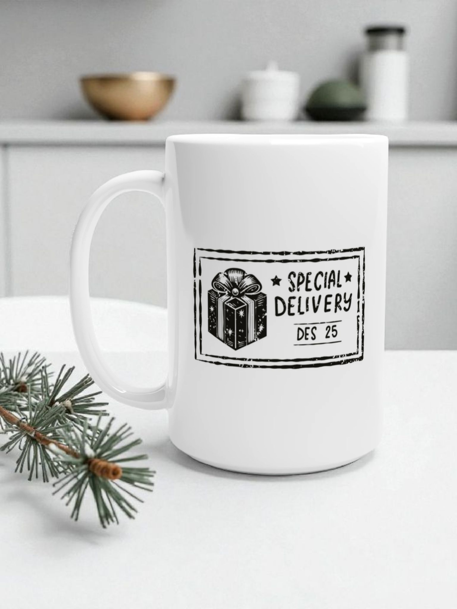 This minimalist Special Delivery mug brings festive charm to your coffee or tea, making it a perfect holiday gift or addition to your kitchen.